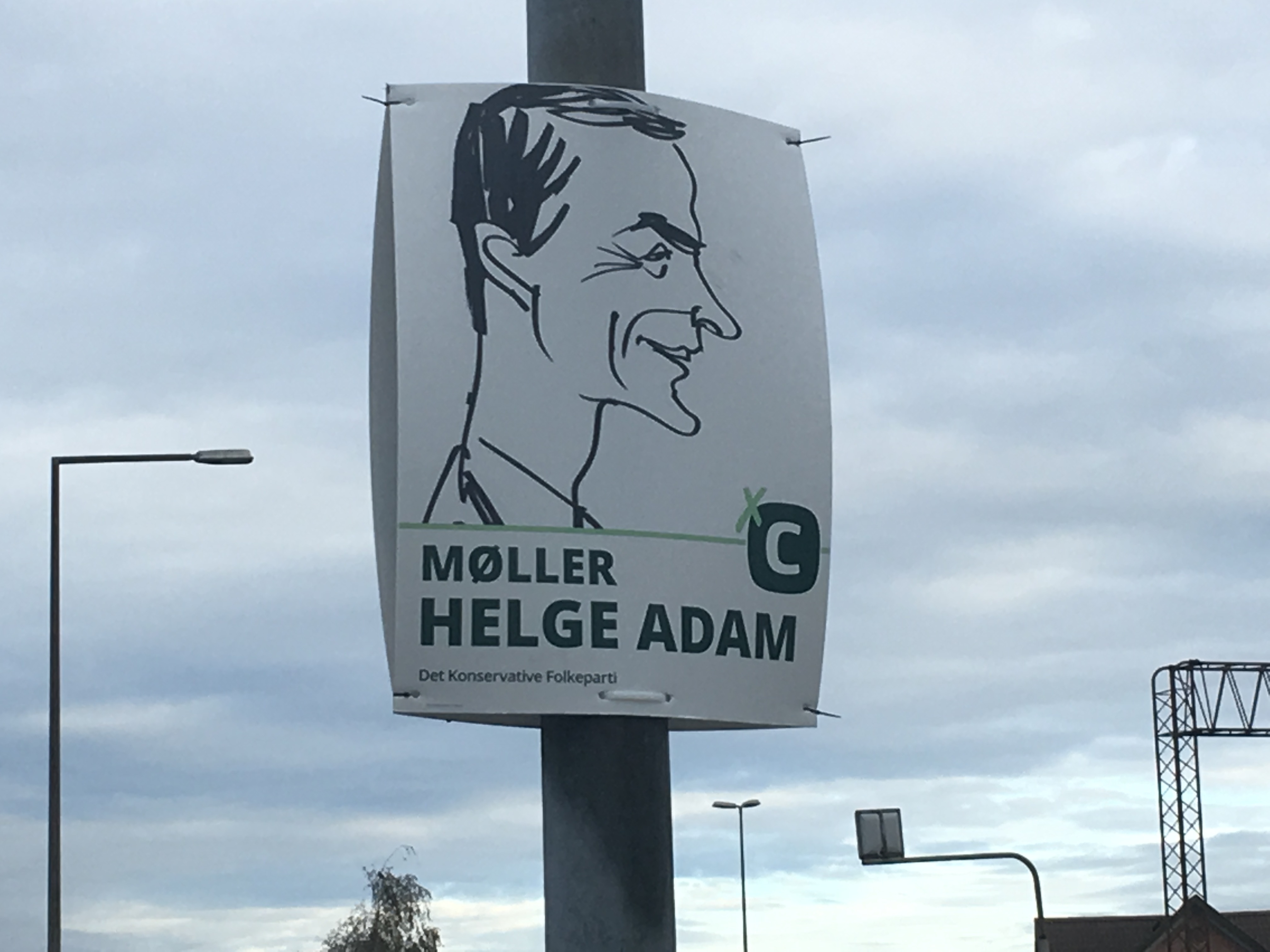 Den konservative politiker Helge Adam Møller, der er opstillet i Næstved, har også valgt en utraditionel metode til at få vælgernes opmærksomhed. Hans valgplakat er nemlig ikke prydet med et foto – men med en tegning.