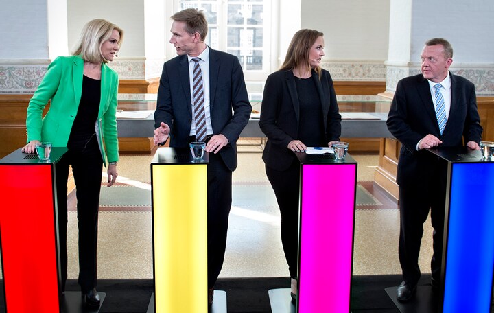 Kristian Thulesen Dahl (DF), Svend Thorhauge (R), Pia Olsen Dyhr (SF) og Brian Mikkelsen (K), da K-formand Søren Pape Poulsen er forhindret. Uffe Elbæk (AL) skriver på Twitter, at han desværre også er forhindret grundet sygdom. Alternativet sender i stedet gruppeforkvinde Josephine Fock.