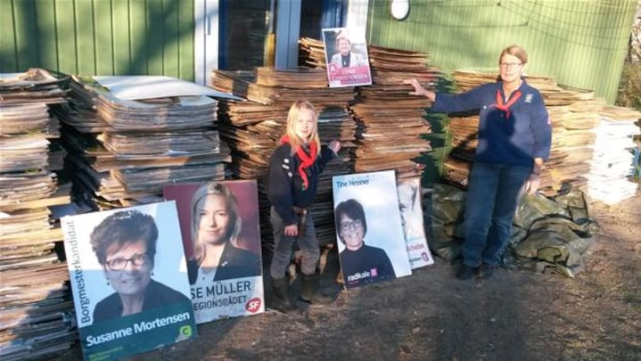 Skjoldmøerne havde nemlig tilbudt politikerne, at de ville pille plakaterne ned for fem kroner stykket, fortæller spejderleder Kirsten Leth fra Skjoldmøerne til DR Nyheder: