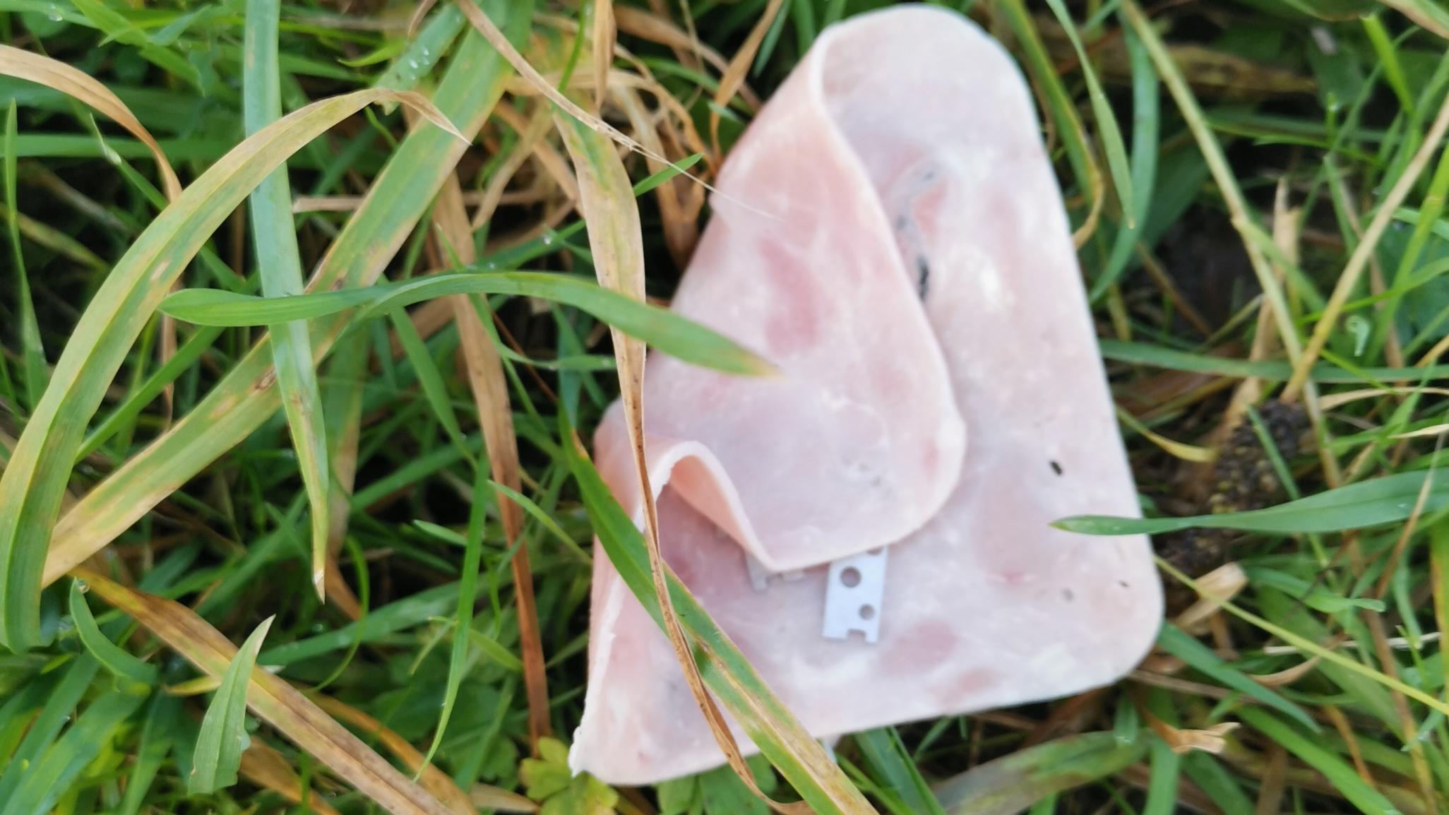Den bornholmske hundejer fulgte efter Samson og fandt, hvad der umiddelbart så ud til at være en lækker godbid for enhver madglad hund: Fire stykker sammenkrøllet skinkepålæg.