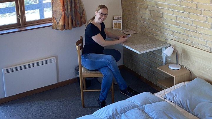 Værelserne er nemlig udstyret med et skrivebord, kaffe ad libitum og uanede mængder af ro. Et oplagt sted som hjemmearbejdsplads, hvis ungerne er for urolige derhjemme, eller man er træt af skypemøder ved køkkenbordet, mener Line Juhl Kronow.