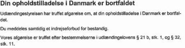 Udlændingestyrelsen har truffet afgørelsen blandt andet på baggrund af oplysninger fra Bornholms Politi, viser afgørelsen, som DR P4 Bornholm har fået aktindsigt i.