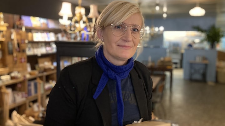 Hun arbejder på caféen Den Gamle Købmandsgaard og plejer at sende turister ned ad den brostensbelagte gade til byens museum.