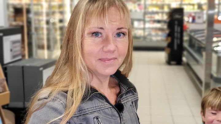 Vi møder Christina Agergaard i supermarkedet, hvor hun er ved at købe ind til aftensmad.