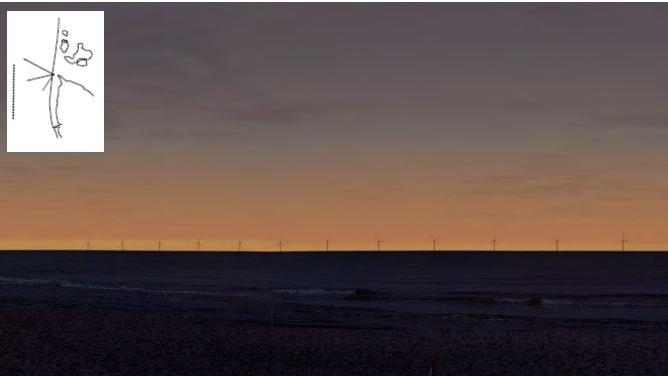 Men de bliver stadigvæk tydelige fra kysten. For når den ene vinge strækker sig mod himlen, vil spidsen være 193 meter over havoverfladen. Og når mørket falder på, vil du også kunne se de røde lys på vindmøllehovedet, der skal advare fly.