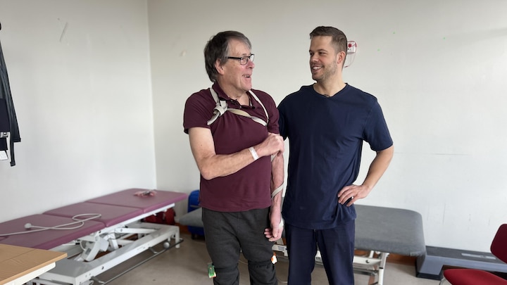 Kjeld Levorsen havde en hjerneblødning i slutningen af februar, og han er nu ved at træne sin evne til at gå.