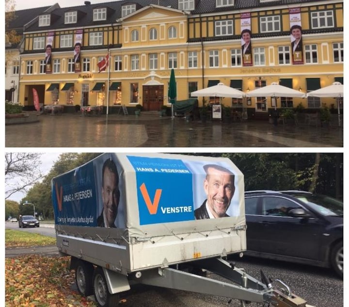 Kreativt tænkt: Byrådskandidat sætter valgbannere op på hotelfacade