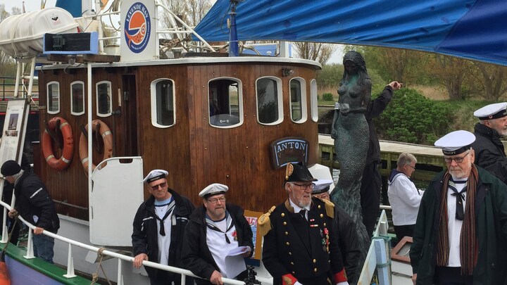 Thorkild Hansen fra Havbrugsgruppen Ebeltoft er klar til at sejle ud med Greenpeace på den gamle kutter MS Anton, der i dagens anledning er smykket med et banner, der siger Stop Havsvineri.