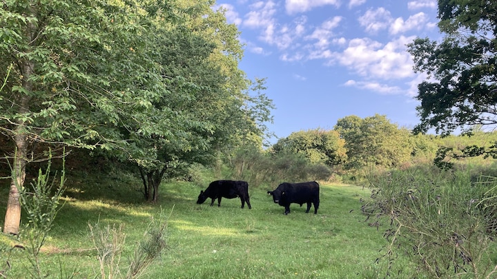 Episoden resulterede i, at den ene ko sad fast i et mudderhul, mens den anden flygtede fra tyrene - og sin egen kalv - i flere timer.