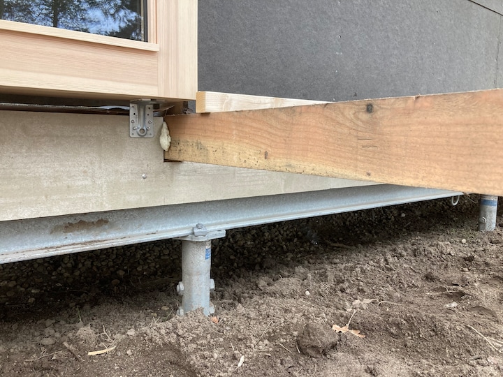 - Det er et skruefundament, og det er en nyere type fundament, som gør, at i stedet for at lave et fundament af beton, så skruer du de her kæmpeskruer i, og oven på dem bygger man sin trækassette og sit gulvdæk, fortæller Anders Strange Sørensen.