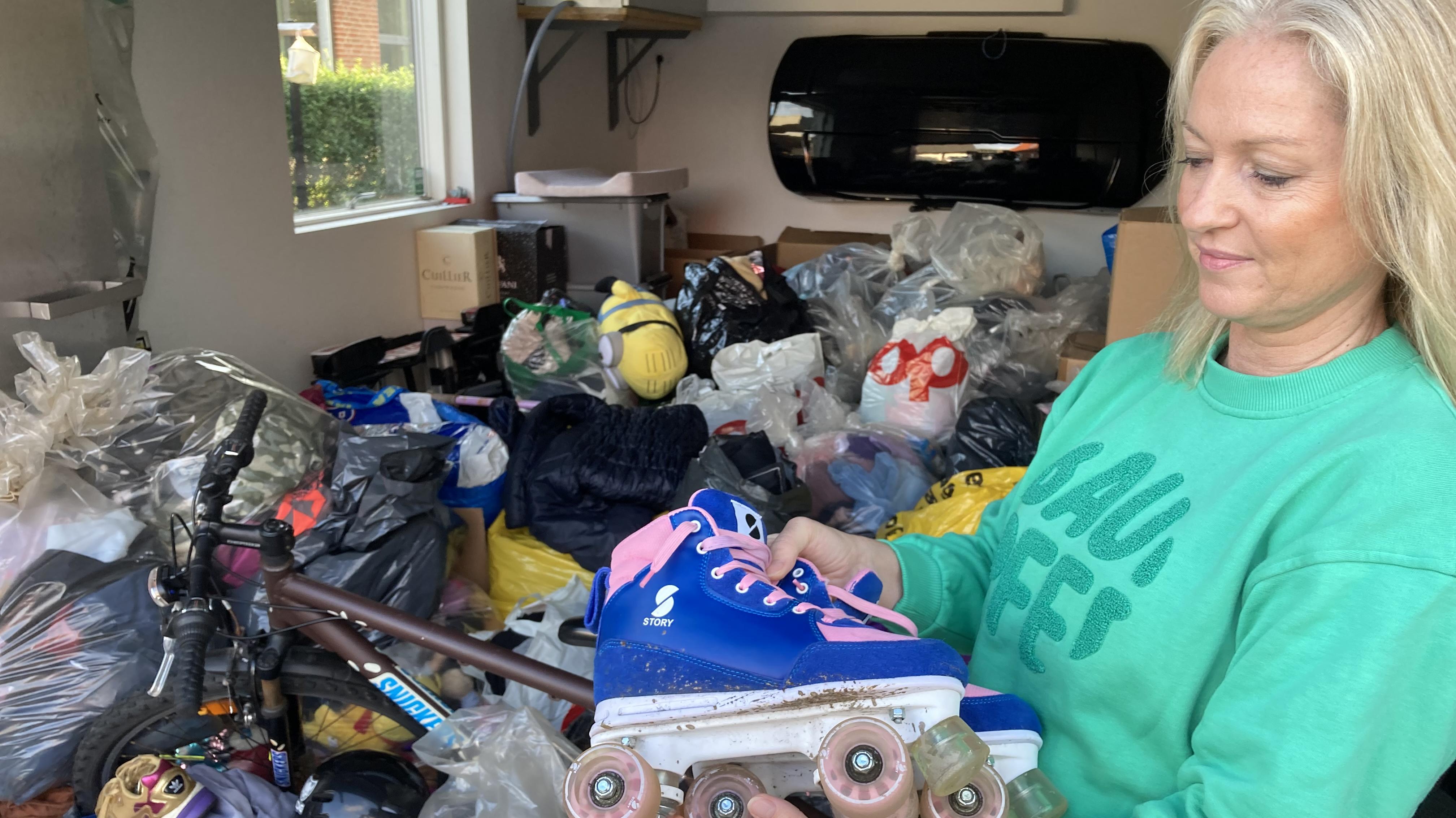 Sække med børnetøj, sko, rulleskøjter, en cykel og masser af legesager hober sig lige nu op i Susanne Gregers Thuesens garage.