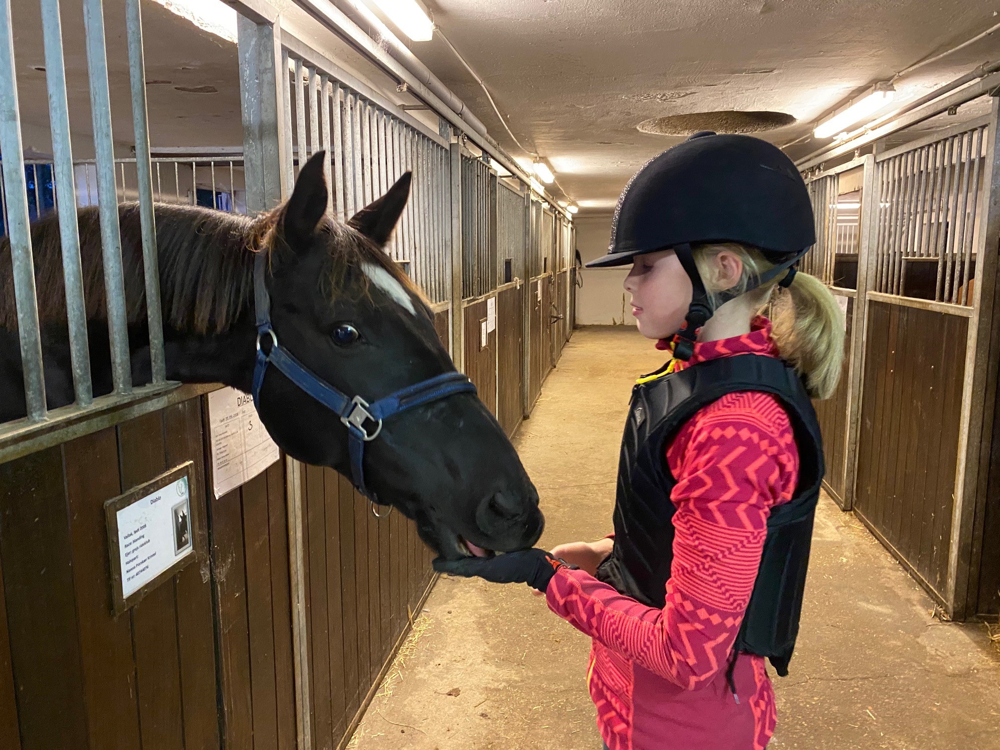 På ridebanen i Grejs er Pasco og Anna Danielsen færdig med springtræning. Hun er glad for at være i klubben, og hendes far - Bo Danielsen – betaler gerne for sin datters timer på hesten.