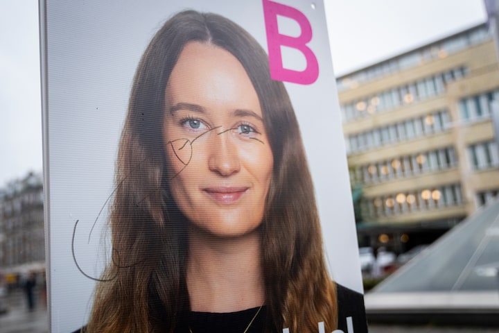 Valgplakat udsat for hærværk, torsdag den 30. oktober, 2025 på Frederiksberg. Den 18. november afholdes der kommunal- og regionalvalg i Danmark. (Foto: © Sebastian Elias Uth, Ritzau Scanpix)