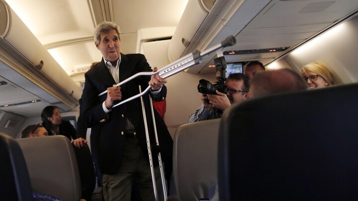 Der er udenrigsminister Kerry’s krykker til forskel fra tidligere runder af de iranske atom-forhandlinger. Kerry brækkede låret på cykeltur under de sidste møder i Geneve og har både krykker og læger med i Wien.