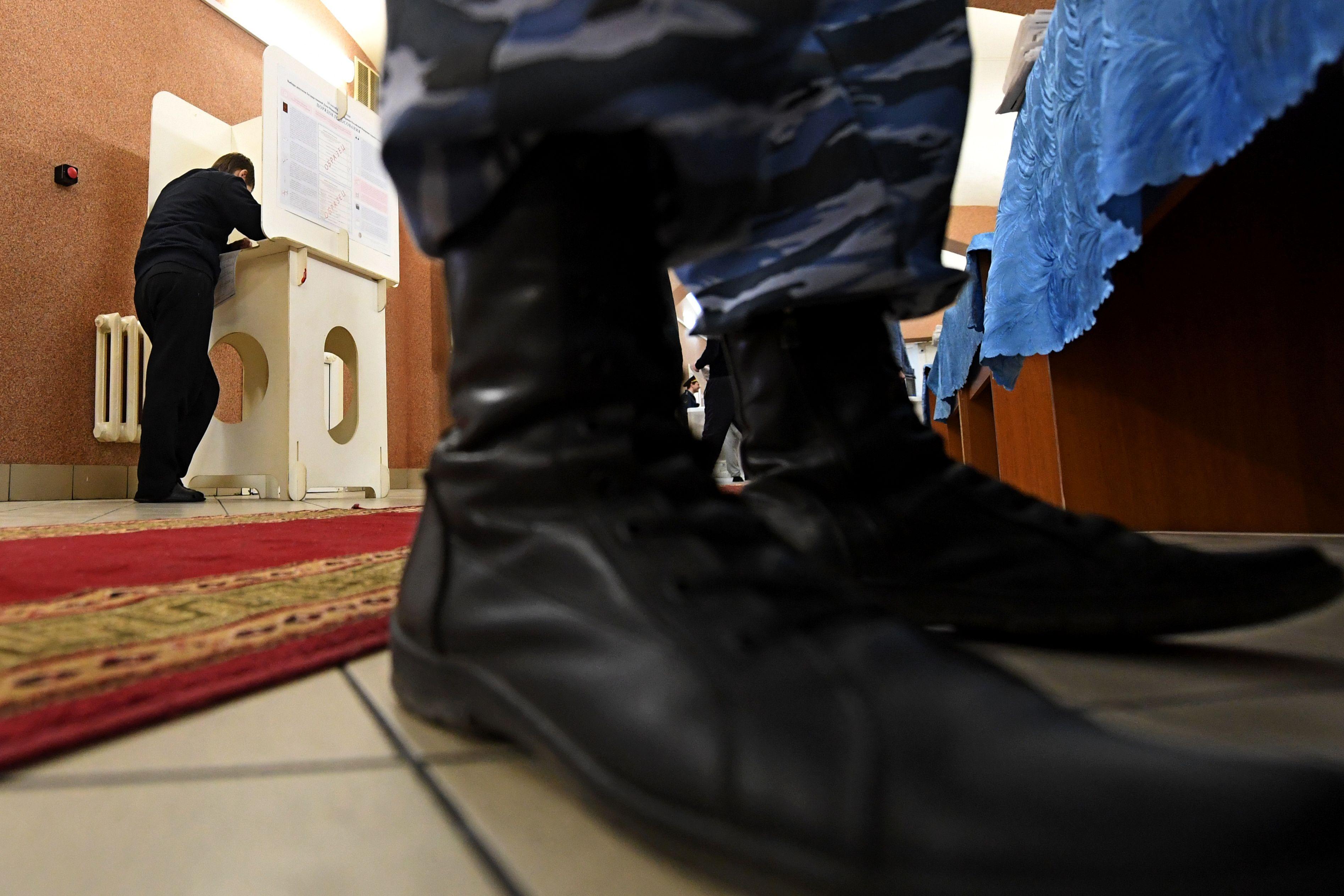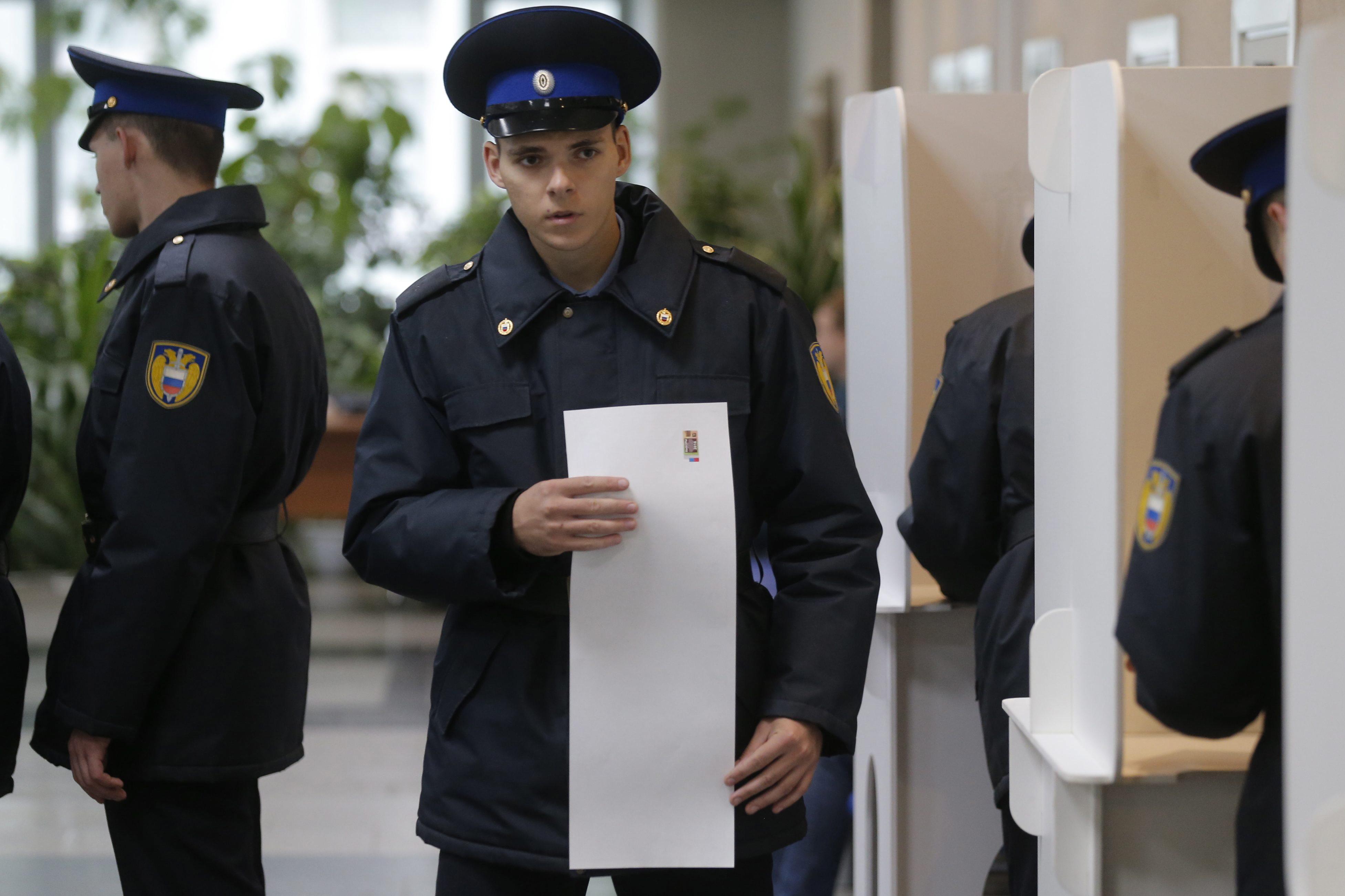 Se dagens første billeder fra de russiske valgsteder i billedserien ovenfor.