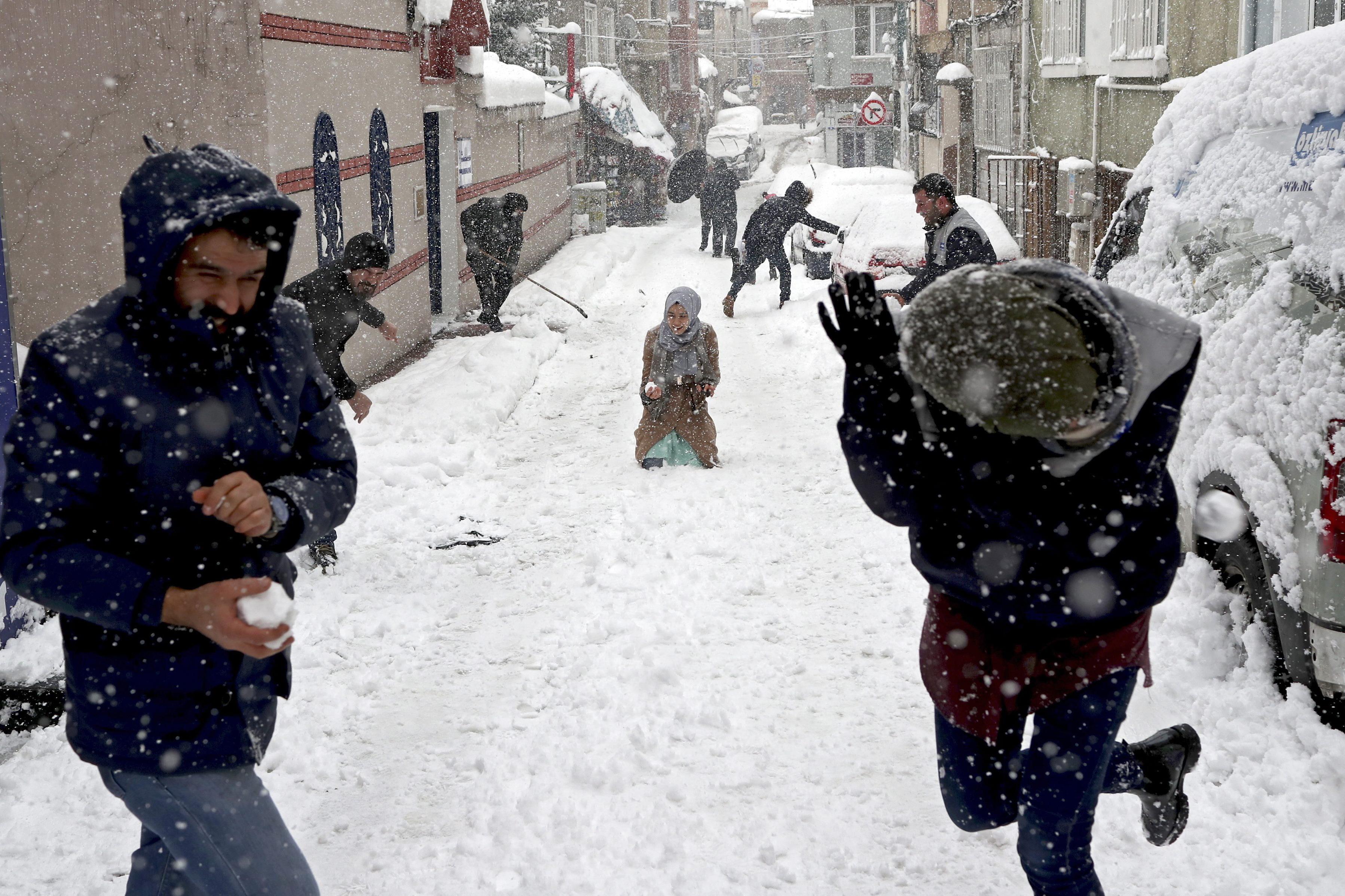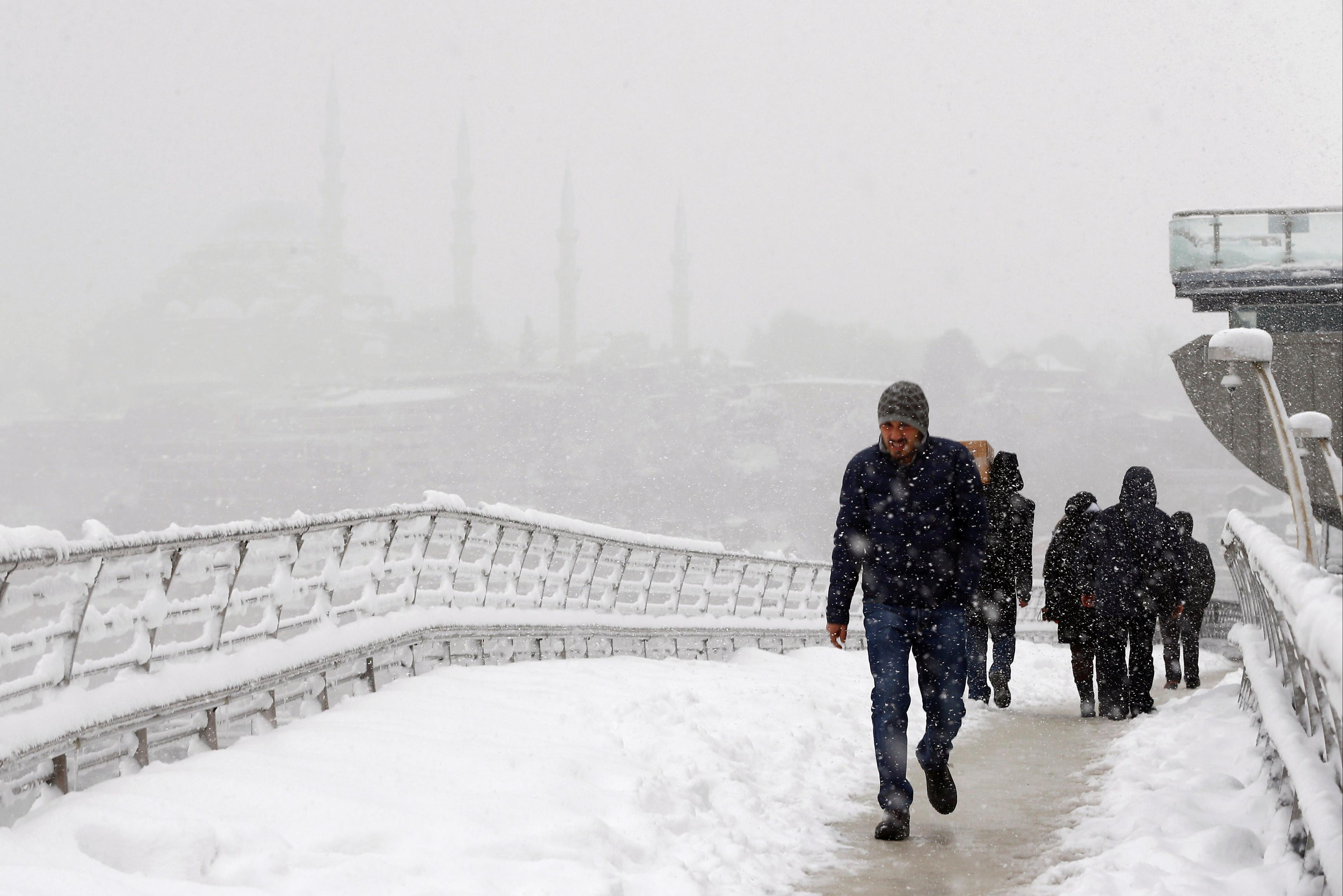 Selv for årstiden er det usædvanligt med så kolde temperaturer i Tyrkiet. Mange flyafgange er blevet aflyst på grund af det voldsomme vejr. (Foto: © OSMAN ORSAL, (c) DR/Scanpix)