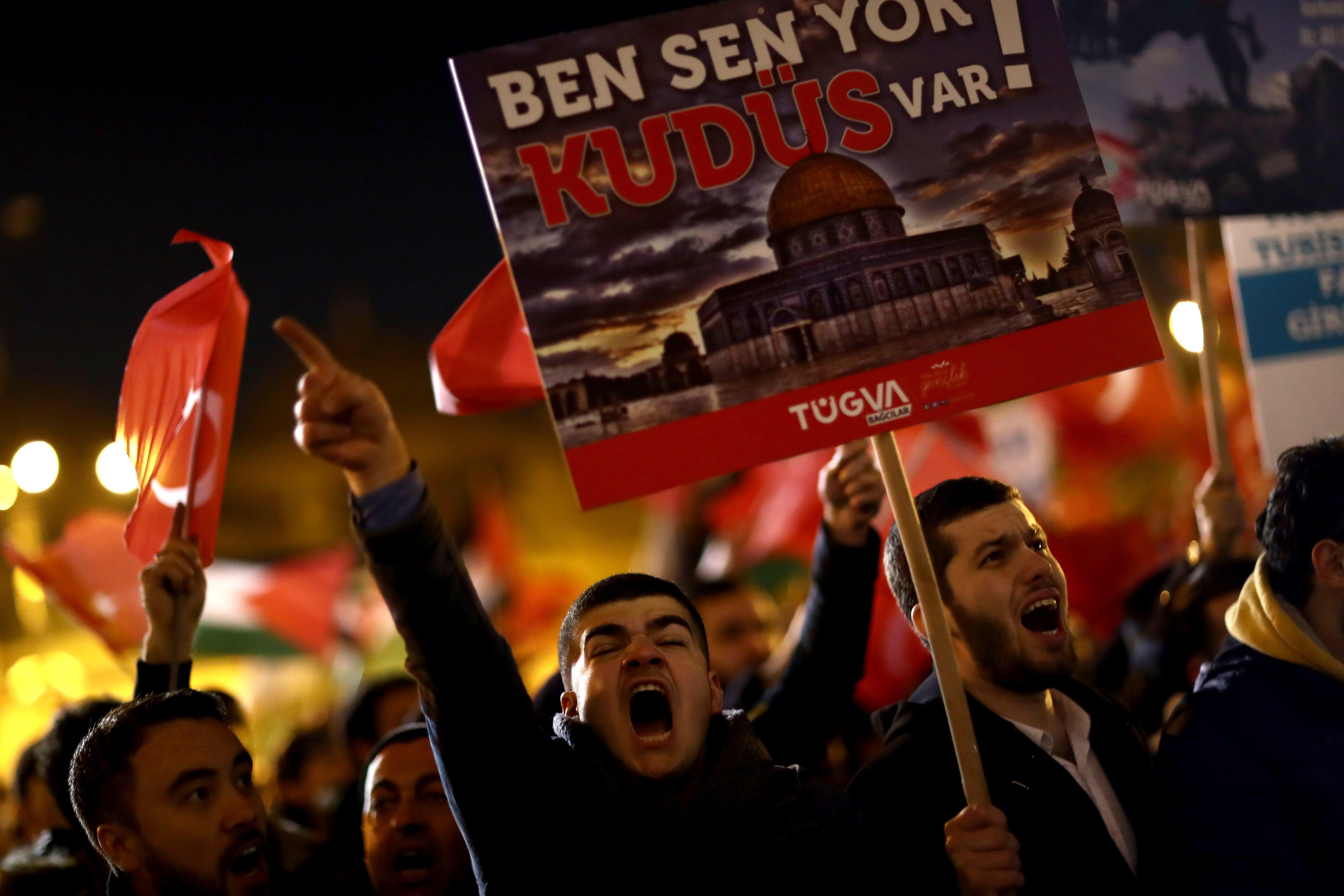 Den kontroversielle udmelding fik folk på gaderne i både Istanbul, Gaza og Jerusalem til at demonstrere mod beslutningen. Voldsomme protester, afbrænding af flag og vrede tilråb fylder i disse timer gaderne.
