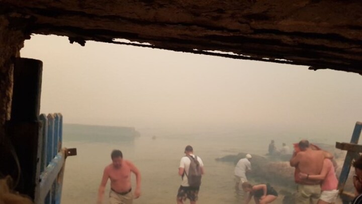 For en gruppe danske turister er ferieidyllen afløst af tyk røg fra en af de skovbrande, der har medført undtagelsestilstand på den græske halvø Attika.