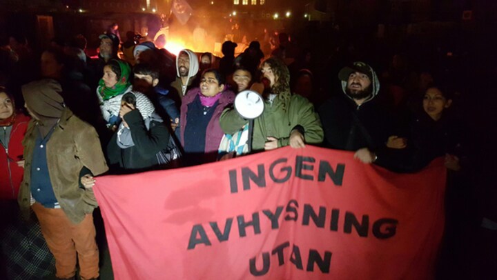Foruden den anholdte demonstrant er et par stykker i forbindelsen med balladen taget i forvaring, skriver Aftonbladet.