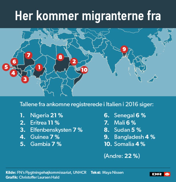 Derfor vil man i dag i første omgang forsøge med penge og rådgivning at sætte ind på en lang række af områder, både i Libyen og i den række af afrikanske stater, der topper listen over flygtninge og migranter. Det handler om at alt fra at styrke og træne den libyske kystvagt, til at donere penge til lejrene og til at motivere migranter til at vende hjem.