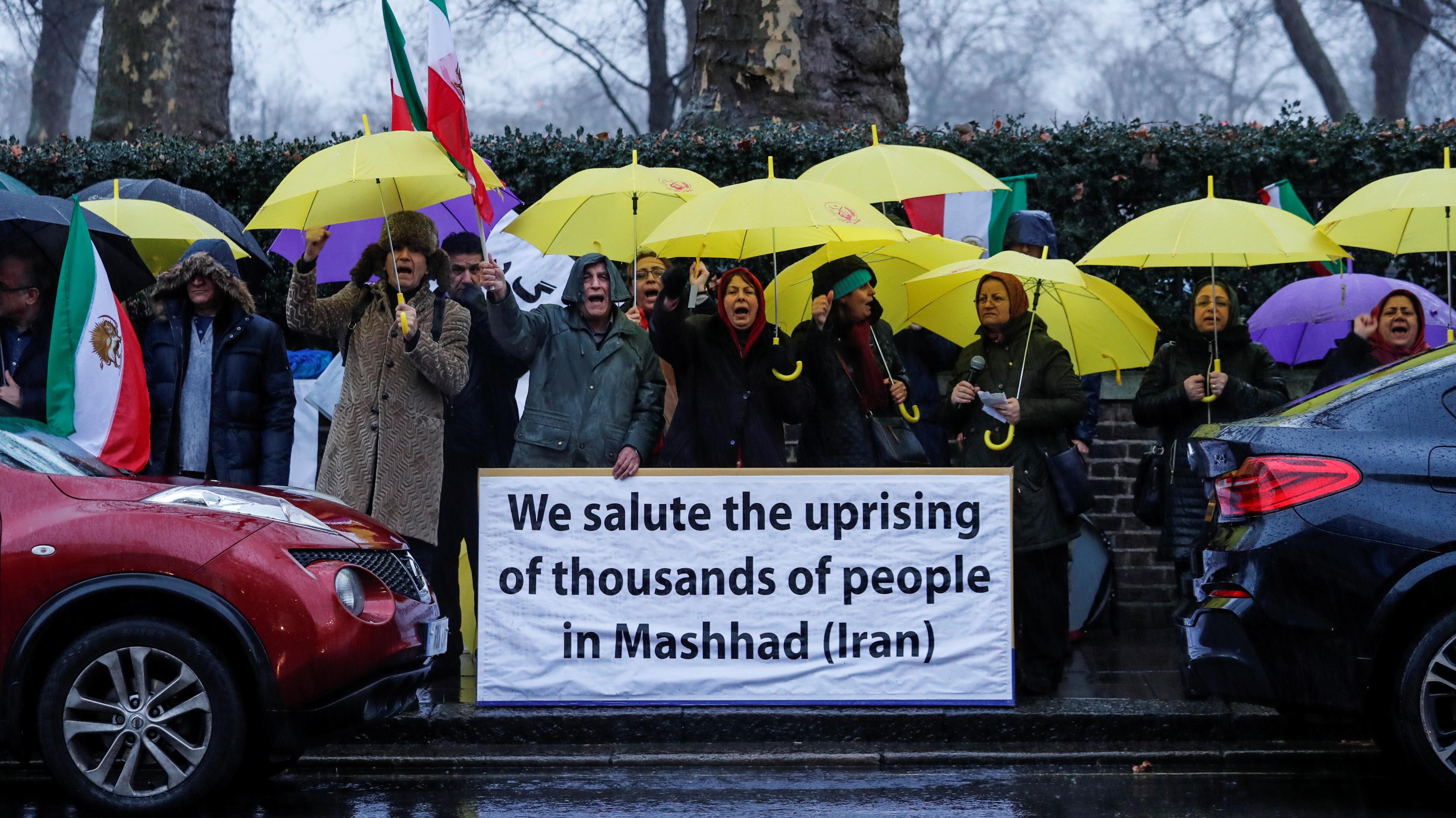 Demonstrationerne foregår ikke længere kun i Iran. Foran den iranske ambassade i London mødte flere op for at vise deres støtte til de iranske demonstranter tidligere i dag.