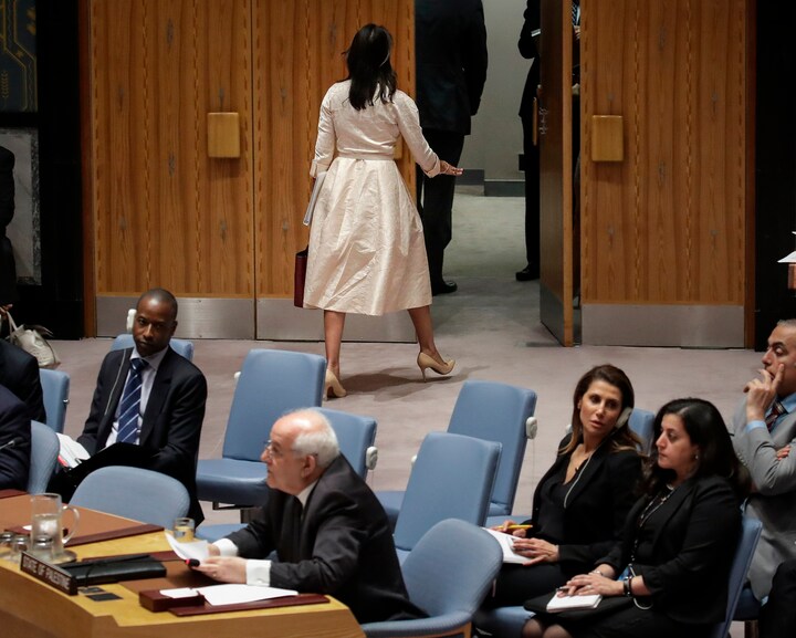 Israel fik støtte af den amerikanske FN-ambassadør Nikki Haley, som udvandrede, da det var den palæstinensiske observatørs tid til at tale.