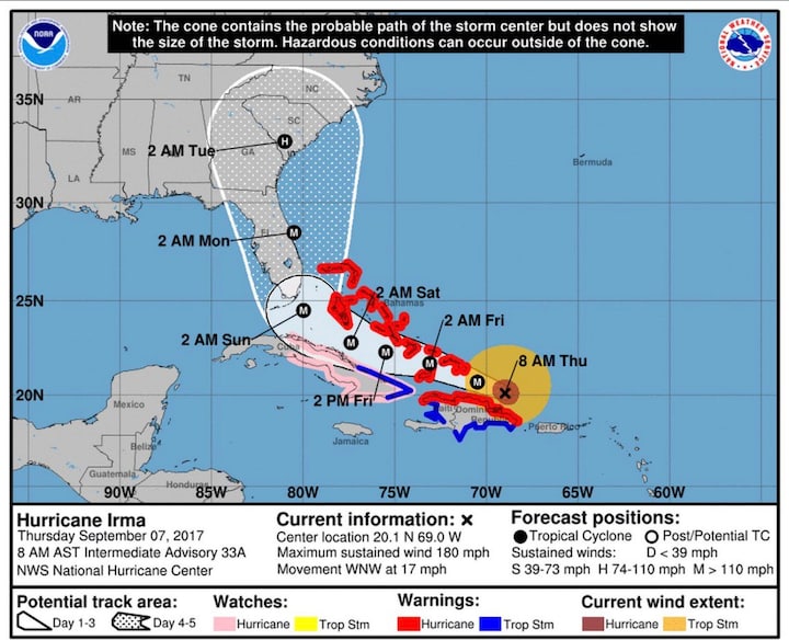 - Det er blevet mere sandsynligt, at Irma rammer det sydlige Florida som en farlig orkan, der vil føre til livsfarlige oversvømmelser, skriver det nationale orkancenter i USA ifølge CNN.