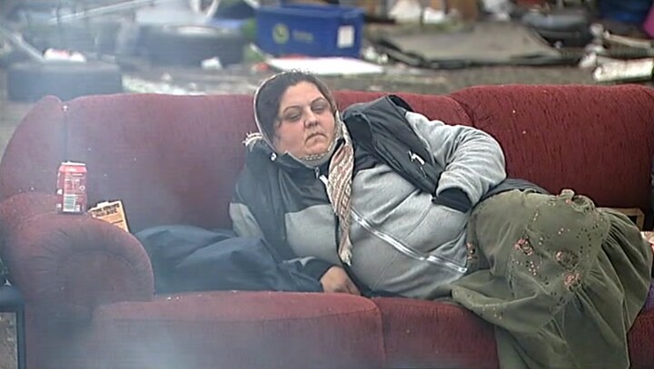 Et bål giver lidt varme i novemberkulden. Over det står en stor gryde med indhold, som koger. Campingvogne står side om side med sammenflikkede skure bygget af lidt brædder og forefaldende materialer. Politibiler kører frem og tilbage. Der lugter af affald og manglende sanitære forhold.