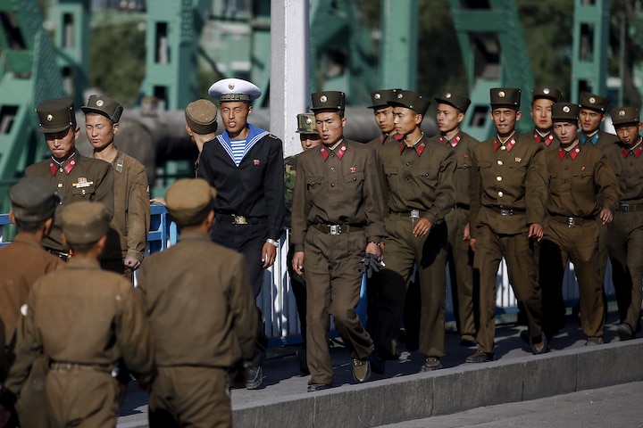 Det sker blandt andet ved en stor militærparade i hovedstaden Pyongyang, hvor inviterede udenlandske journalister får et sjældent kig på det lille lands arsenal af tanks og soldater.
