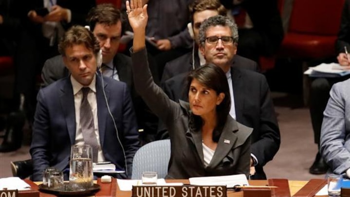 Den amerikanske FN-ambassadør, Nikki Haley, kaldte resolutionen "groft ensidig" og bebrejdende over for Israel. Hun kritiserede den også for ikke at nævne den palæstinensiske bevægelse Hamas, som USA mener er skyld i volden.