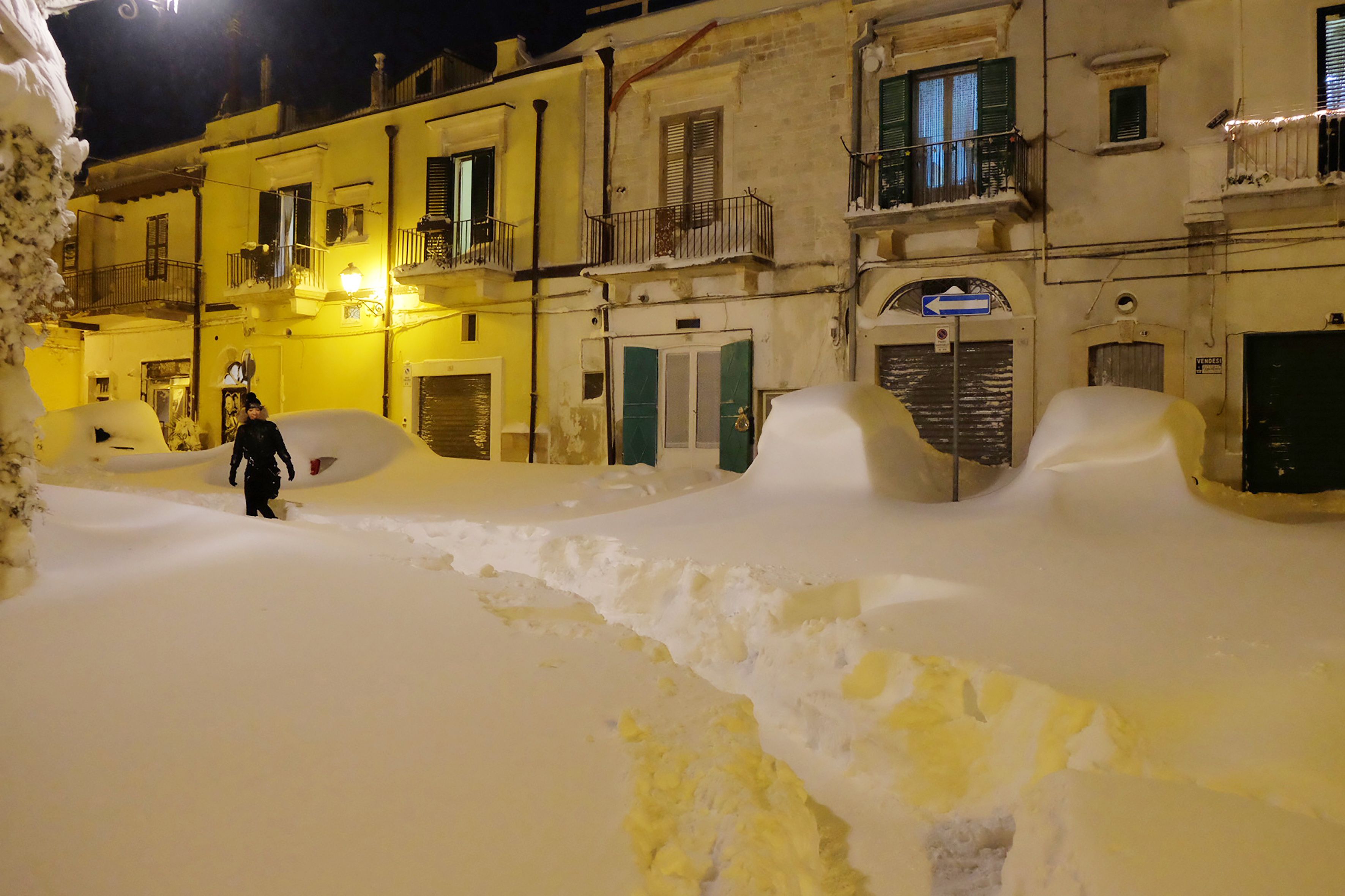 I det sydlige Italien holder nogle skoler lukket mandag på grund af op til en meter sne.
