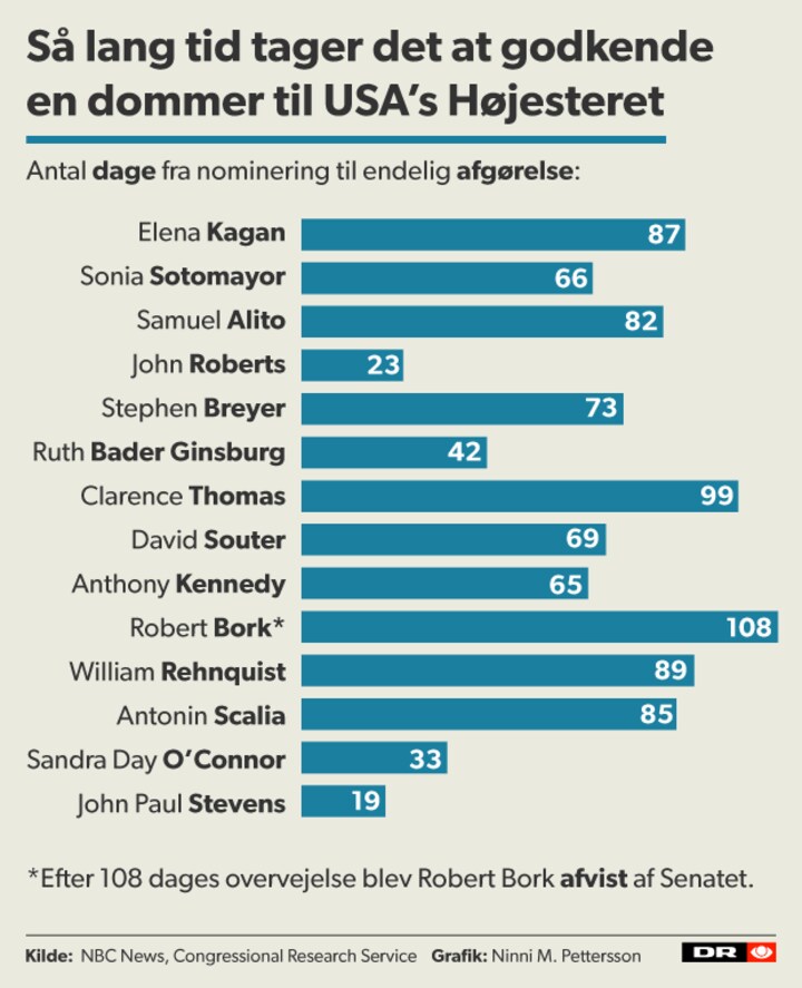 I alt har Senatet afvist 12 nominerede i dens 228 år lange historie. Senest blokerede det Republikanske flertal udnævnelsen af Barack Obamas kandidat til posten, Merrick Garland.