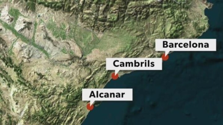 I nat gentog scenerne sig nærmest i den mindre kystby Cambrils godt 80 kilometer syd for Barcelona. Omkring klokken 1 blev en Audi A3 kørt ind på en promenade og ramte flere personer. Syv personer blev såret, og en kvinde er efterfølgende død af sine kvæstelser.