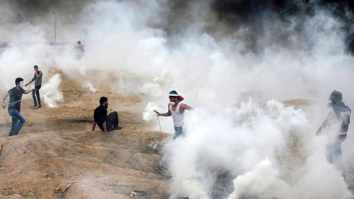 Denne fredag stod de israelske soldater overfor "omkring 7.000 palæstinensere, som deltog i uroligheder fem steder langs Gazastribens grænser", siger en israelsk militærkilde til AP og tilføjer, at en af grupperne forsøgte at trænge igennem hegnet.