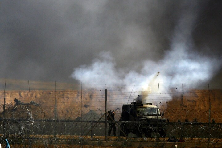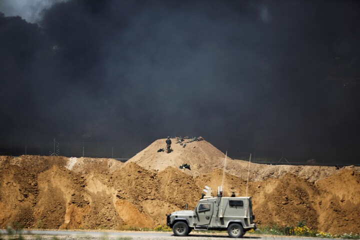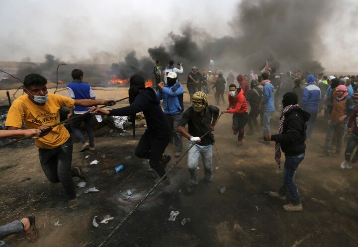 Mindst 38 demonstranter og flere end 1.600 er blevet såret efter knap en måned. Israel afviser international kritik og fastholder at forsvare sin grænse mod Hamas. En gruppe demonstranter bliver set bryde ud fra de store menneskemængder, rykke helt tæt og forsøge at forcere hegnet med trådsaks og andet værktøj.