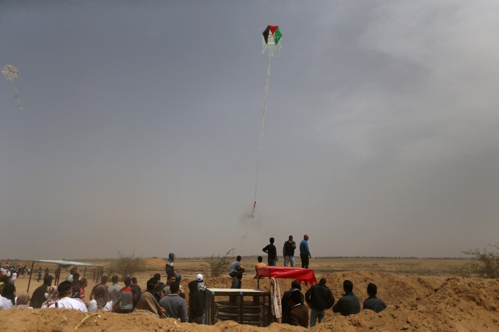 Femte fredag i træk trækker op mod titusinder af demonstranter til grænsen. De hjemmebyggede drager med eksplosiver er skyld i store ildebrande, som israelske beredskabsstyrker sættes ind for at slukke.
