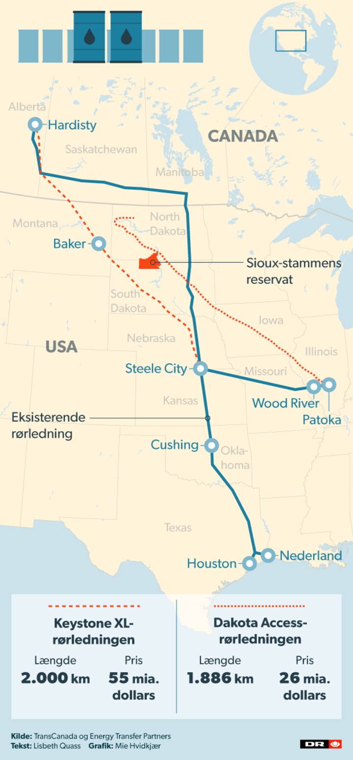 Projekterne blev skrinlagt under præsident Barack Obama, men allerede i sin første uge på posten underskrev Donald Trump et dekret, der pustede nyt liv i olierørledningerne.