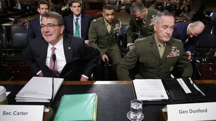 General Joseph Dunford, der er leder for generalstaben, nævner ikke Trump ved navn, da han bliver udspurgt af den republikanske senator Lindsey Graham.