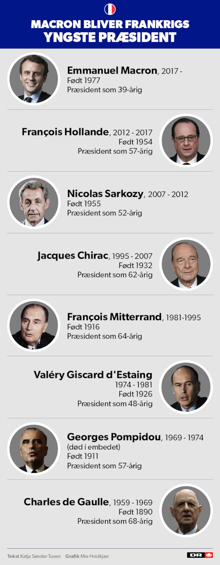 Og så vil Emmanuel Macron ellers hurtigt få hilst på sine øvrige kolleger blandt verdens førende stats- og regeringschefer. 25. maj er der NATO-topmøde i Bruxelles, og dagene efter er der G7-topmøde på Sicilien. Så inden månedens udgang har Macron fået hilst på en lang række politiske ledere fra Donald Trump til statsminister Lars Løkke Rasmussen (V).