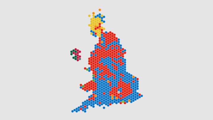 Britisk valgsystem: Brugte vi det i Danmark, ville Folketinget bestå af tre partier, fra sektionen "Valg i Storbritannien"