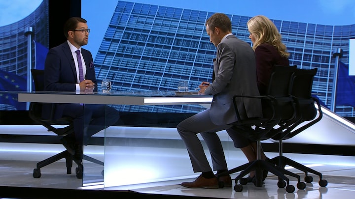 Men op til det svenske valg på søndag har partiet også markeret sin EU-modstand. Det skete igen søndag aften, da partiets leder, Jimmie Åkesson, var indbudt til spørgetimen på tv-kanalen SVT.
