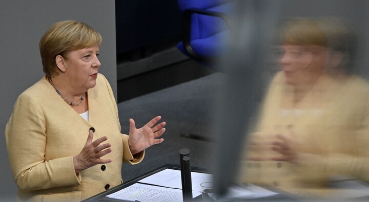 Men i dag stemplede den afgående kansler, Angela Merkel, for alvor ind i valgkampen og udløste en dramatisk scene i Forbundsdagens formentlig sidste samling før valget den 26. september.