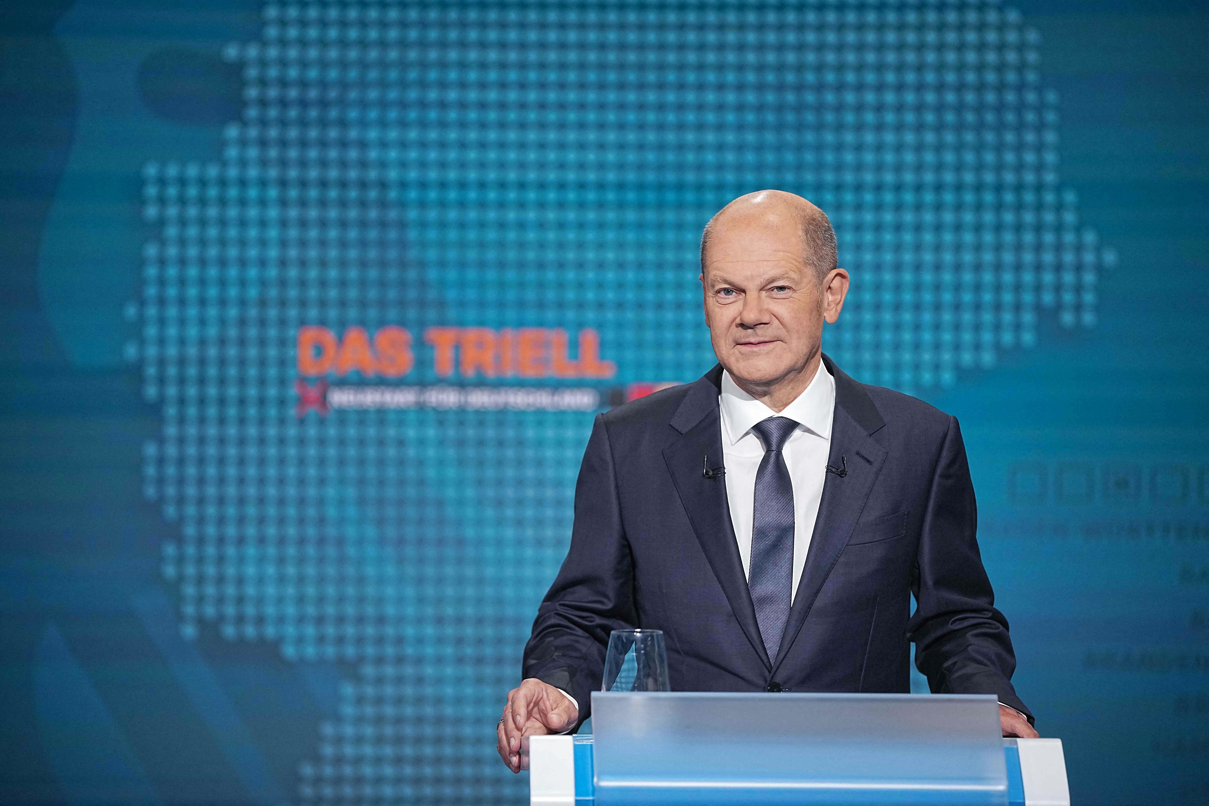 Socialdemokraten Olaf Scholz havde én vigtig opgave under gårsdagens første store tv-debat mellem de tre kanslerkandidater i den tyske valgkamp: Ikke at træde ved siden af.