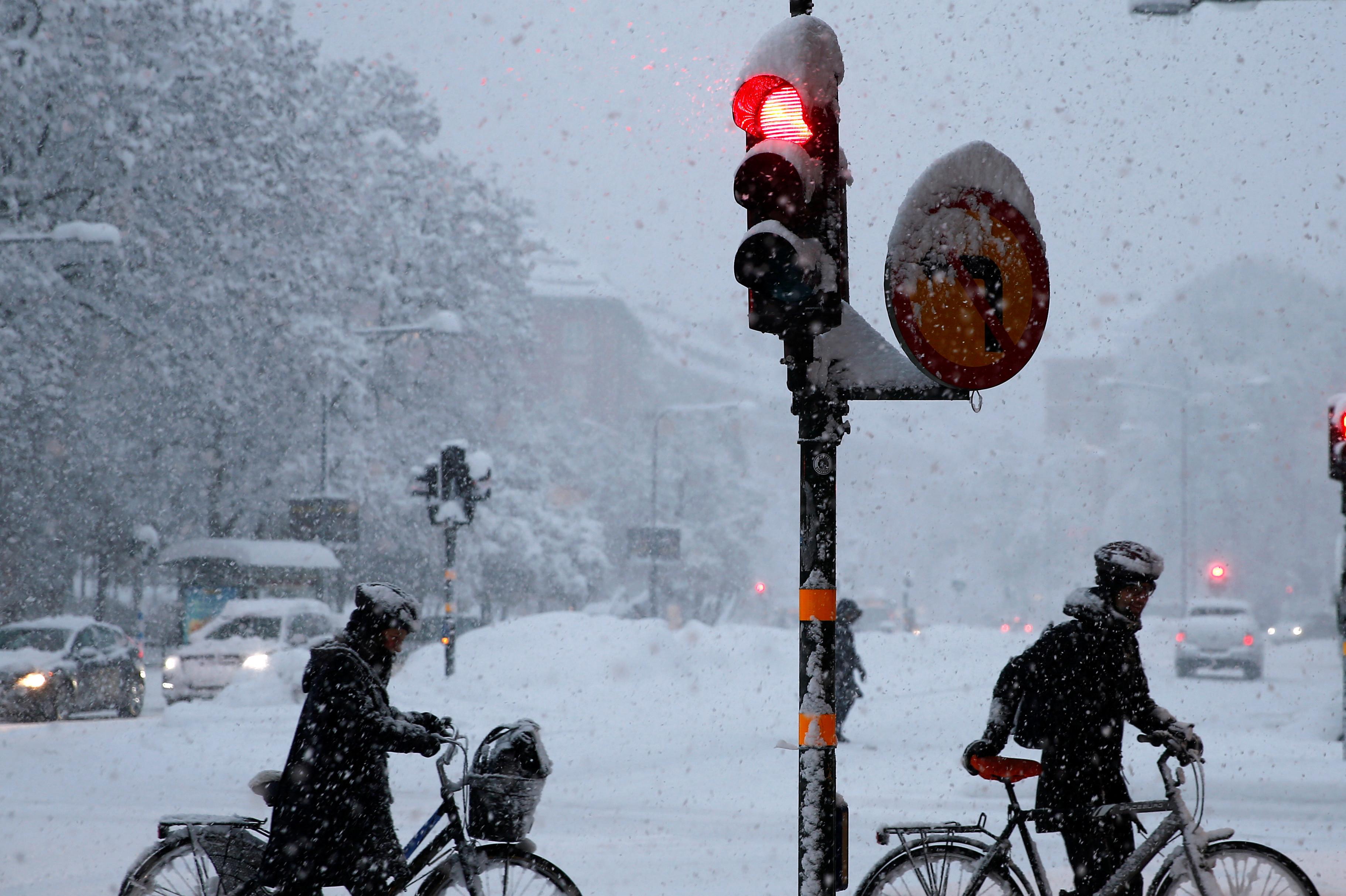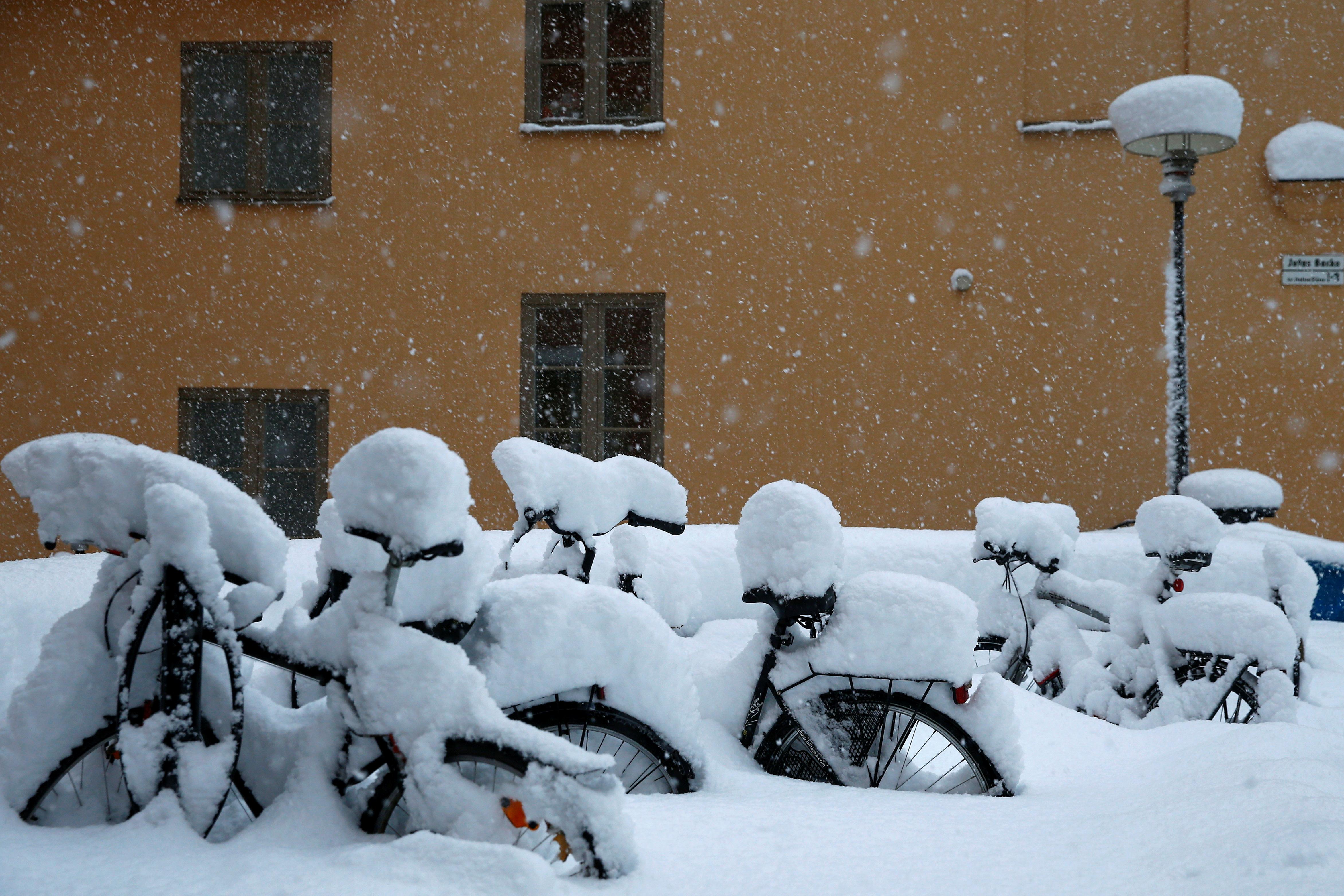 Den svenske hovedstad, Stockholm, er pakket ind i en stor hvid dyne af sne efter flere dages snevejr.