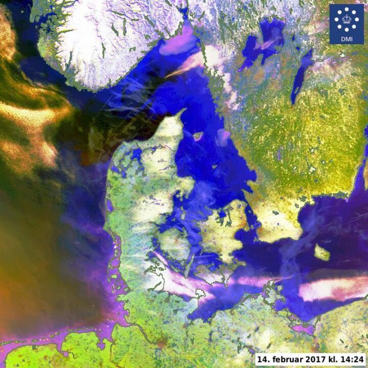 Det er ikke alle, der har fået sne, men på satellitbilledet herunder fra i dag, kan man se, at især de østvendte kyster i alle landsdele har haft et snedække.
