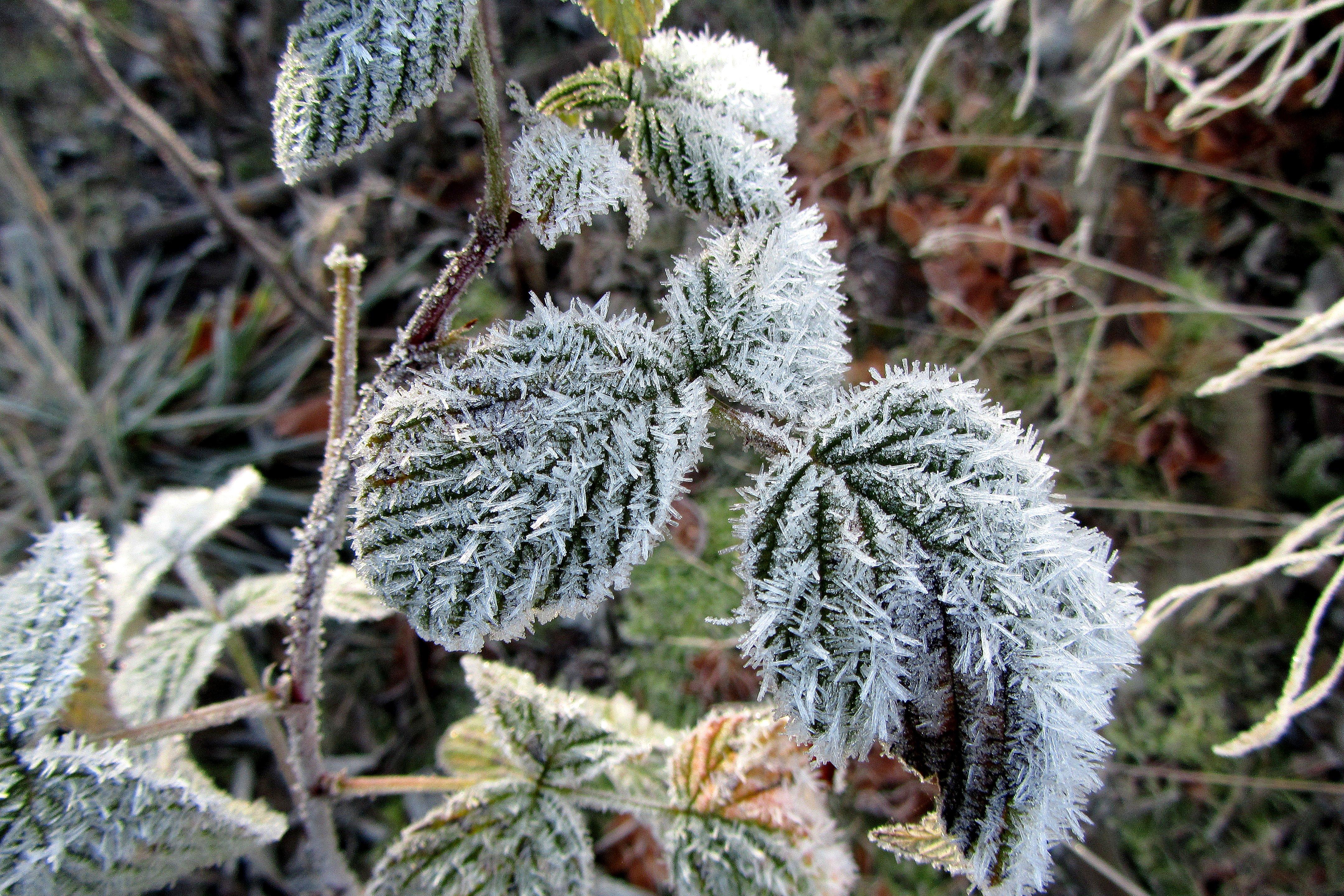 Temperaturen er faldende, og den kravler efterhånden under frysepunktet om natten. Resultatet er is på ruderne, i græsset og på bladene.