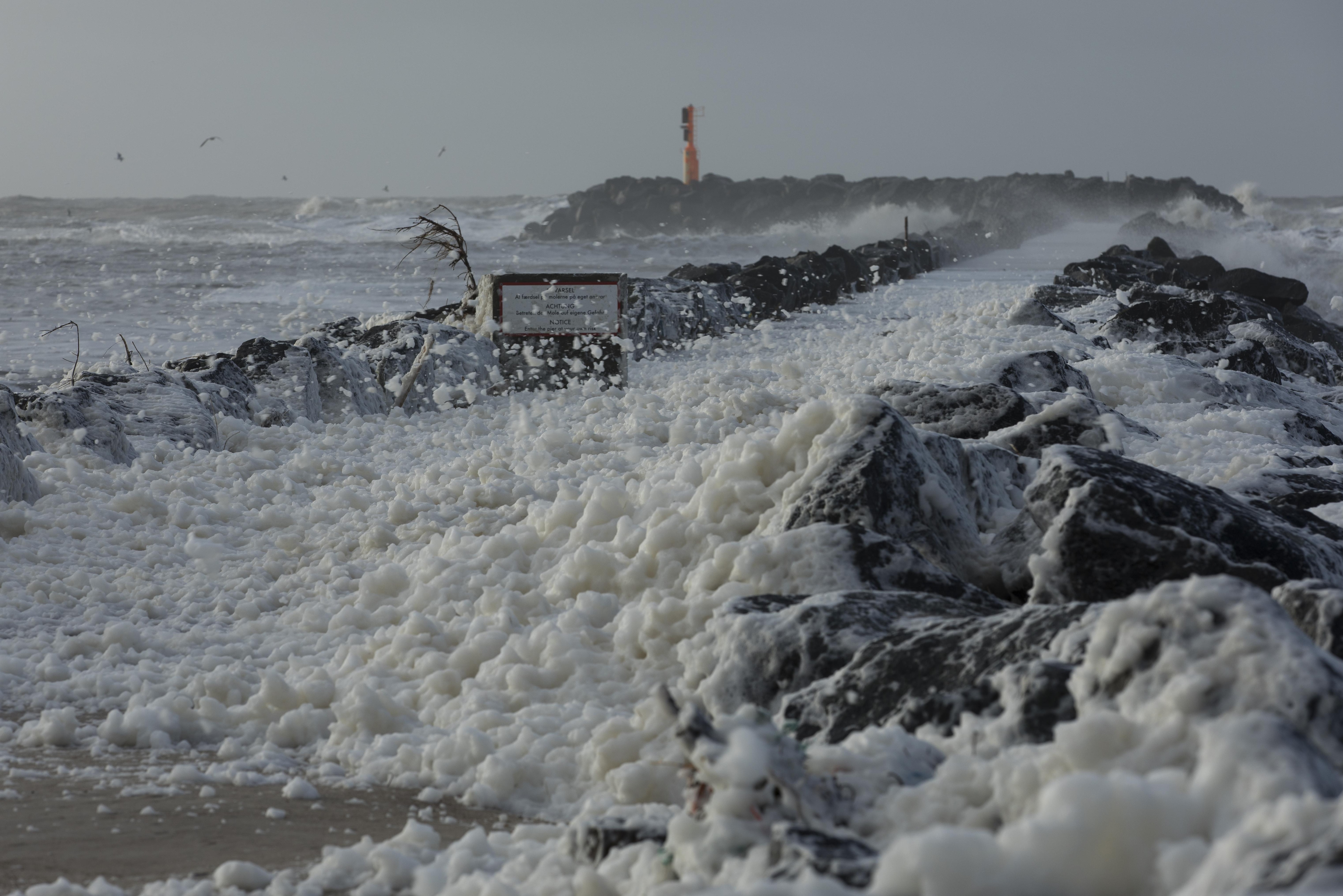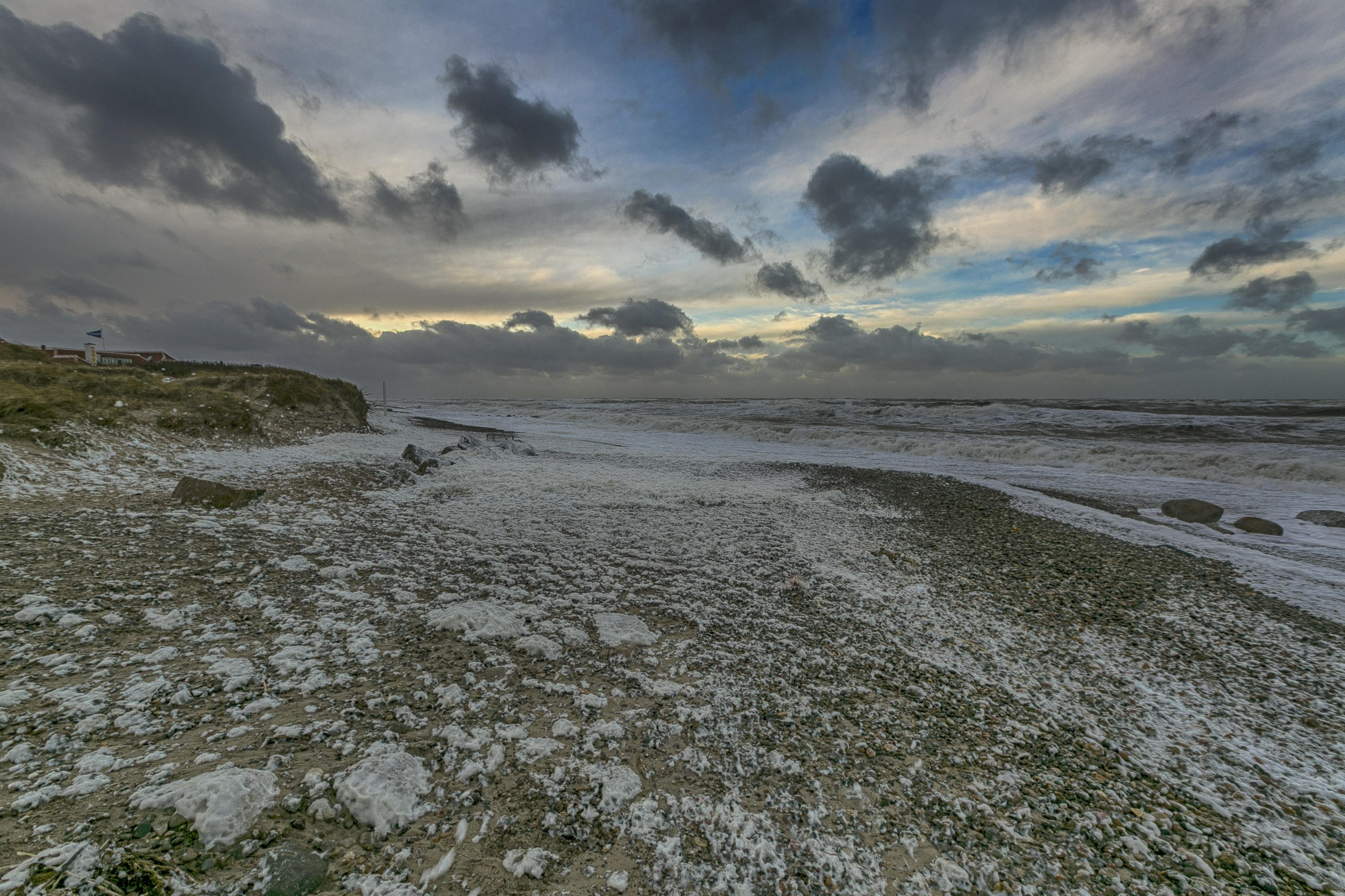 Der var godt gang i bølgerne ved Hvide Sande, hvor havskummet dækkede store dele af stranden. (Foto: © Anette Sofia Svejstrup, brugerbilleder)