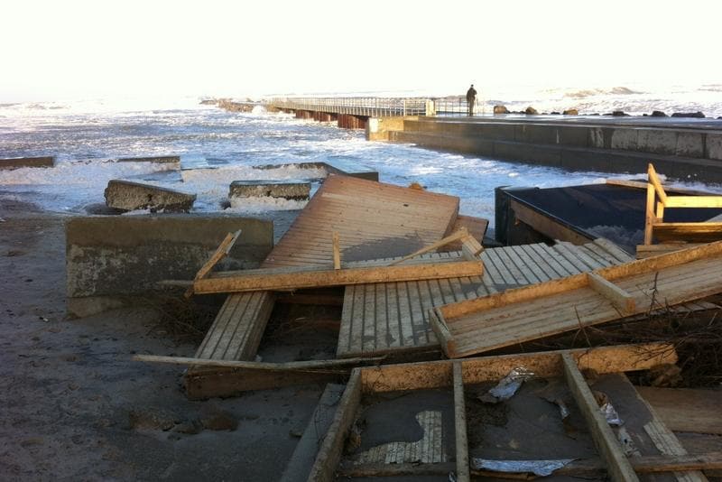 I Vorupør har man tradition for at vinterbade mellem jul og nytår. Selvom Urd forsøgte at sætte en stopper for traditionen ved at ødelægge den nye sauna, har lokale kræfter sørget for, at vinterbadere alligevel kan få sig et koldt gys i morgen. (Foto: © Kim Poulsen, brugerbilleder)