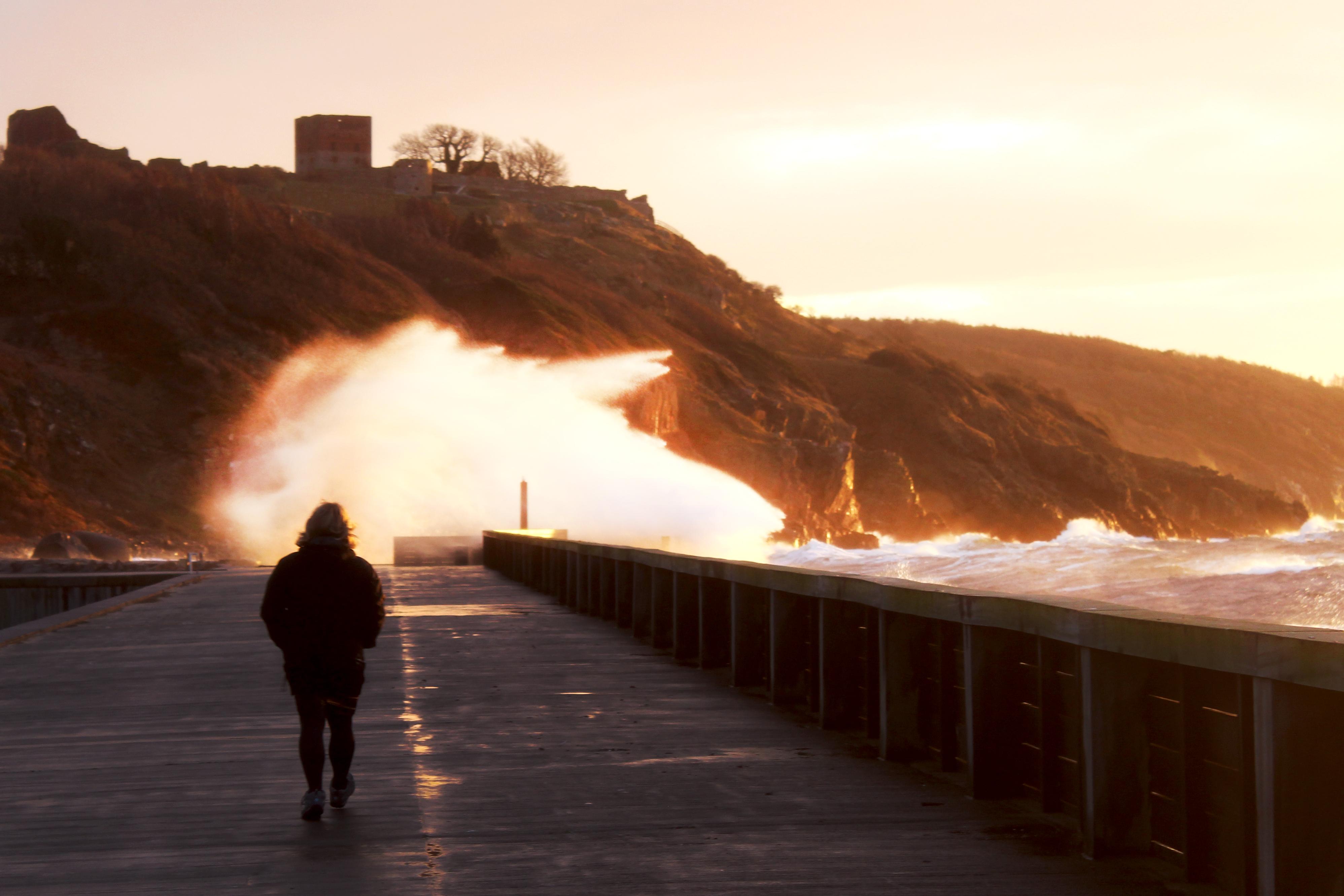 På Bornholm gav de høje bølger et smukt syn langs klippekysten. (Foto: © Lauge Eilsøe Madsen, brugerbilleder)