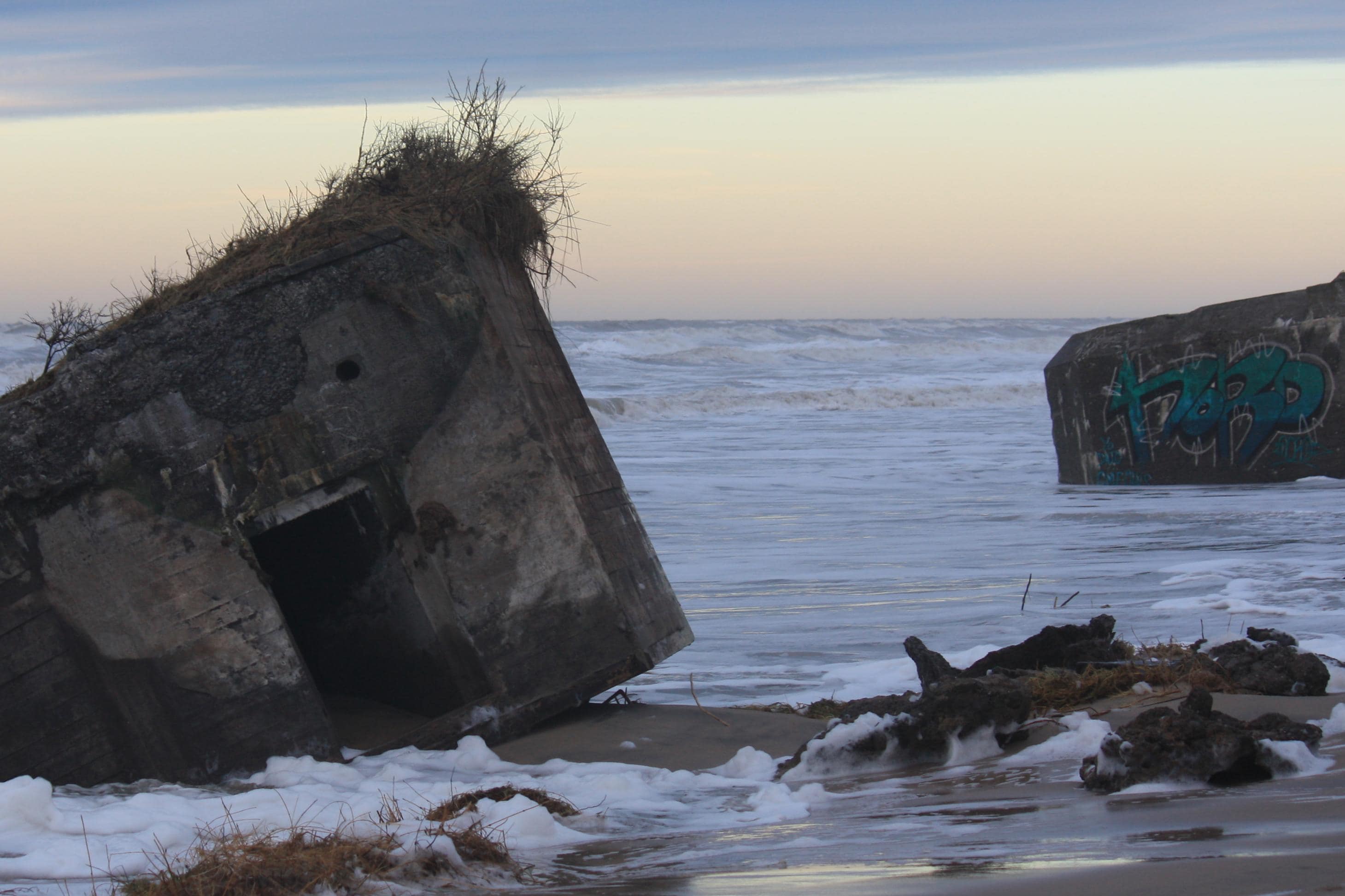 Sandet blev trukket ud i vandet, hvilket resulterede i, at blandt andet denne bunker blev gravet dybere ned i sandet. (Foto: © Ulla Paulsen, brugerbilleder)